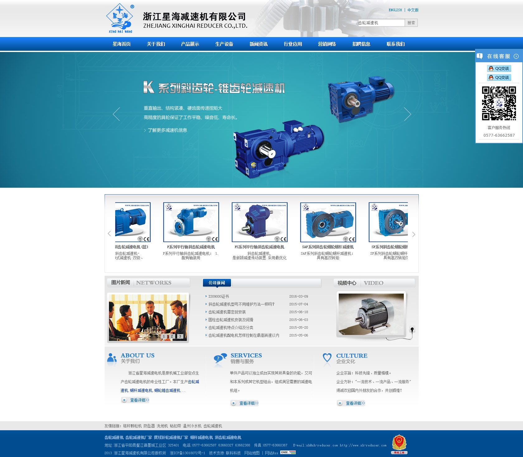 浙江星海減速機(jī)有限公司是原機(jī)械工業(yè)部定點(diǎn)生產(chǎn)齒輪減速電機(jī)的專業(yè)性工廠,公司通過(guò)了ISO9001:2008質(zhì)量體系認(rèn)證,國(guó)家高新技術(shù)企業(yè),浙江省科技型企業(yè),溫州市高成長(zhǎng)型企業(yè),平陽(yáng)縣專利示范企業(yè)和溫州市知名商標(biāo)。本廠生產(chǎn)R系列斜齒輪減速電機(jī)(齒輪減速機(jī)),S系列斜齒輪—蝸輪減速電機(jī)(蝸輪減速機(jī)),F(xiàn)系列平行軸斜齒輪減速電機(jī),K系列斜齒輪—錐齒輪減速電機(jī),擺線針輪減速機(jī),T系列螺旋錐齒輪轉(zhuǎn)向箱,H、B系列標(biāo)準(zhǔn)工業(yè)齒輪箱,蝸輪絲桿升降機(jī),RV系列蝸輪蝸桿減速機(jī),ZDY、ZLY、ZSY硬齒輪圓柱齒輪減速機(jī),DBY、DCY硬齒面圓錐圓柱齒輪減速機(jī),ZD、ZL、ZS、ZQ圓柱齒輪減速機(jī)等數(shù)千種規(guī)格的產(chǎn)品,是目前國(guó)際上工業(yè)動(dòng)力傳輸領(lǐng)域最普遍采用的減速驅(qū)動(dòng)裝置。