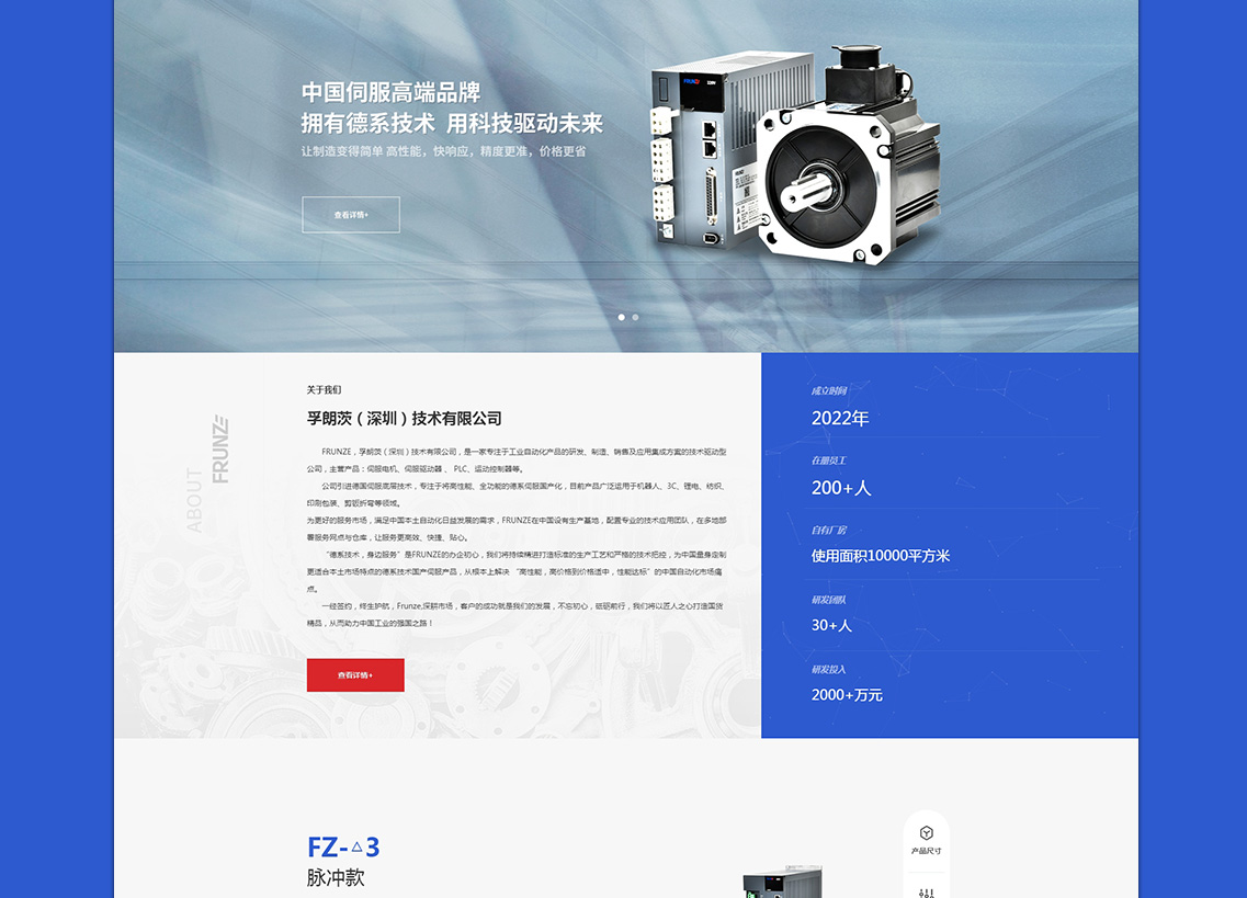 FRUNZE,孚朗茨(深圳)技術(shù)有限公司,是一家專注于工業(yè)自動(dòng)化產(chǎn)品的研發(fā)、制造、銷售及應(yīng)用集成方案的技術(shù)驅(qū)動(dòng)型公司,主營(yíng)產(chǎn)品:伺服電機(jī)、伺服驅(qū)動(dòng)器 、 PLC、運(yùn)動(dòng)控制器等。公司引進(jìn)德國(guó)伺服底層技術(shù),專注于將高性能、全功能的德系伺服國(guó)產(chǎn)化,目前產(chǎn)品廣泛運(yùn)用于機(jī)器人、3C、鋰電、紡織、印刷包裝、剪鈑折彎等領(lǐng)域。