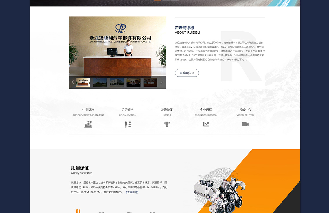 浙江瑞德利汽車部件有限公司,成立于2004年,為香港振宇有限公司在大陸投資的(港澳臺(tái))獨(dú)資企業(yè)。公司坐落在浙江德清經(jīng)濟(jì)開發(fā)區(qū)。目前公司擁有員工150多人,其中技術(shù)管理人員占20%。廠區(qū)面積35000平方米,建筑面積21000平方米。公司于2008年通過ISO/TS 16949:2002國際質(zhì)量體系認(rèn)證。公司主要為各大發(fā)動(dòng)機(jī)及整車企業(yè)提供輪系系統(tǒng)解決方案。主要產(chǎn)品有張緊輪(自動(dòng)式/手動(dòng)式) 惰輪(槽輪/平輪)。