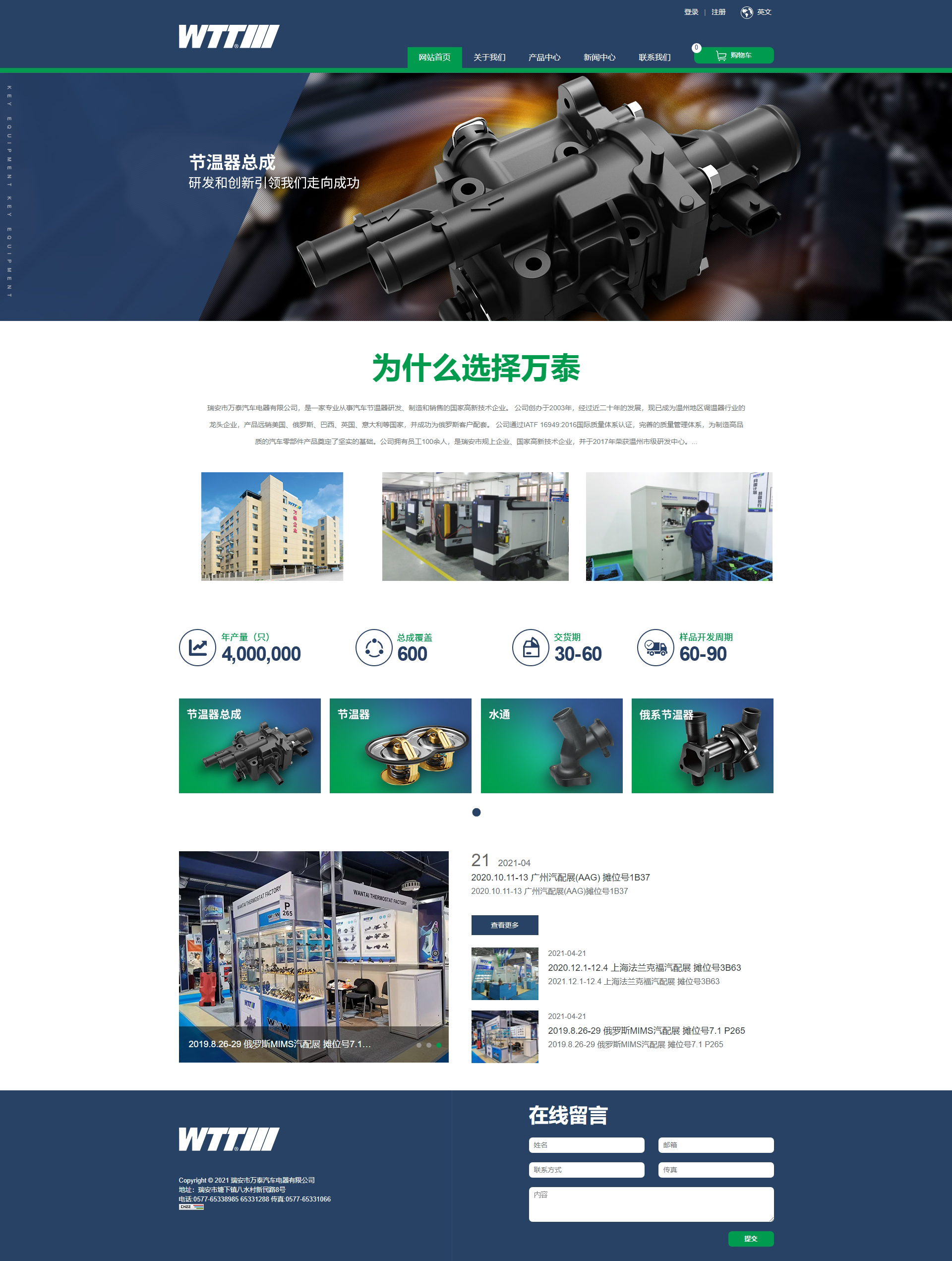 瑞安市萬泰汽車電器有限公司,擁有完整,完整的質(zhì)量管理,采集,生產(chǎn),制造,銷售和管理網(wǎng)絡(luò)的現(xiàn)代化管理體系。公司引進(jìn)國外先進(jìn)技術(shù)和設(shè)備,專業(yè)從事制造和銷售汽車各個(gè)車系的節(jié)溫器、節(jié)溫器總成、水通等產(chǎn)品。我公司堅(jiān)持走科學(xué)技術(shù)發(fā)展之路,與高等院校和研發(fā)機(jī)構(gòu)長期合作,以“追求先進(jìn)技術(shù),加強(qiáng)科學(xué)管理,優(yōu)化結(jié)構(gòu)為目標(biāo)”。在產(chǎn)品生產(chǎn)中,努力創(chuàng)造品牌是一種管理理念。
