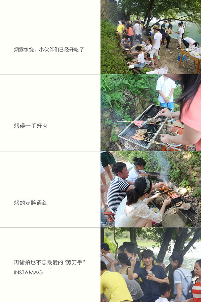第四站燒烤,每個人分工配合著,生火的、串肉的、調(diào)料的,生火的過程遇到了點小麻煩,但小伙伴們還是體驗了一把。