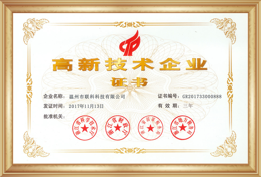 熱烈祝賀溫州市聯(lián)科科技有限公司被認(rèn)定為國(guó)家高新技術(shù)企業(yè)