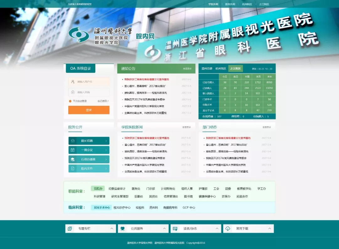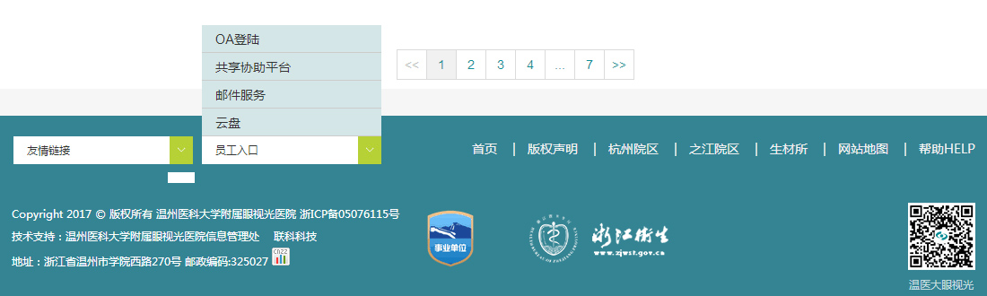 底部分支導航各個分院的連接,員工OA、云盤等實用性連接,直觀可視,更加便捷。