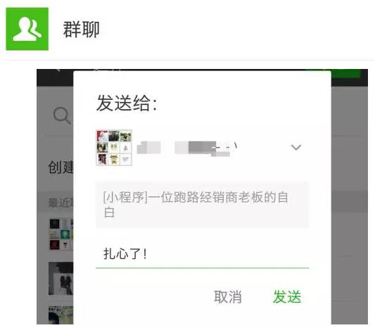 現(xiàn)在可以將小程序的內(nèi)容轉(zhuǎn)發(fā)到群聊里了。如此一來(lái),小程序又多了個(gè)流量入口。